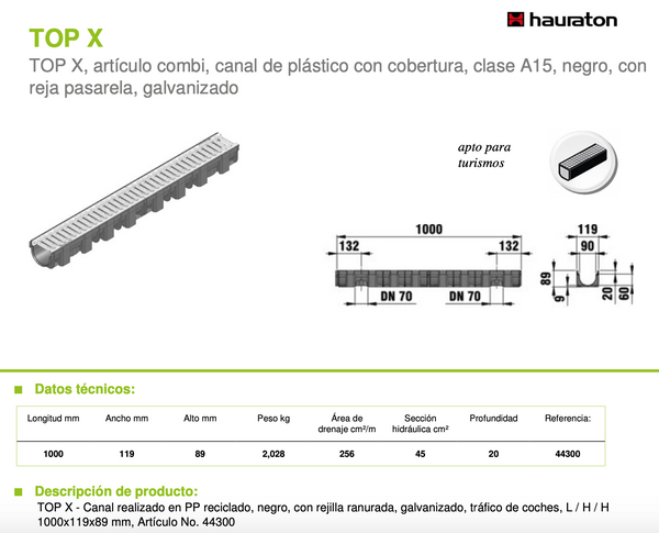Material: - Cuerpo de Canal: RECYFIX Material (Polipropileno Reciclado)