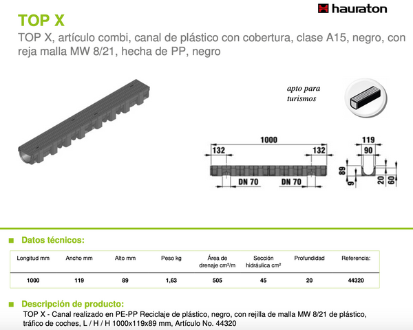 Material: -Cuerpo de Canal: RECYFIX Material (Polipropileno Reciclado)